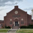 The St. John Neumann window used to be at the entrance of the church where the Parish Office Center now is attached.